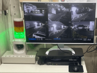 工場社員駐車場の監視カメラとしてCaメリーを6台設置し、赤外線センサー、警報装置を組み合わせて防犯を目的としたシステムを構築。